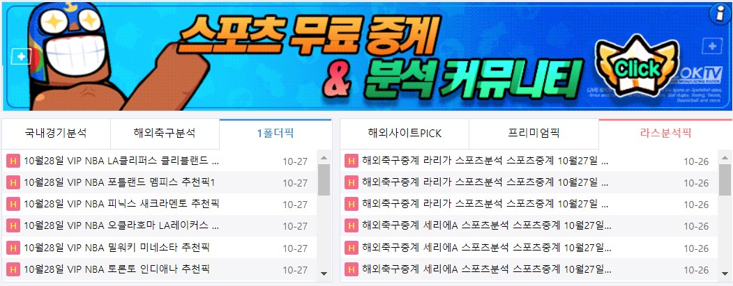 메인 중앙의 분석글들이 상당하다. 스포츠 분석커뮤니티를 통해서 분석글들이 올라와져있는데 거의 방구석 전문가 수준이다.