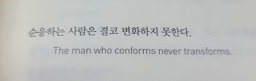 이 말은 참 논란이 될 이야기다. 인생을 사는데 누구나가 억만장자나 사장이 될 수는 없다. 그렇다고 직장 직원으로서 평범히, 즐겁게 자신의 삶을 살아간다고 잘못된 삶은 아니기 때문이다. 하지만 변화라는 것은 다른 말로 준비된 시점과 함께 삶을 업그레이드 시켜주는 순간의 순응일 것이다. 순응을 어떤 말로 해석하느냐에 따라서 이 말이 잘못 해석될 수도, 사람의 인생을 바꿀수도 있다고 생각된다. 하지만 오늘보다 더 나은 내일을 기다린다면서 자신을 발전시키자.